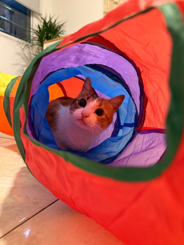 Este túnel multicolor estimula la curiosidad, el ejercicio y el juego independiente de tu michi